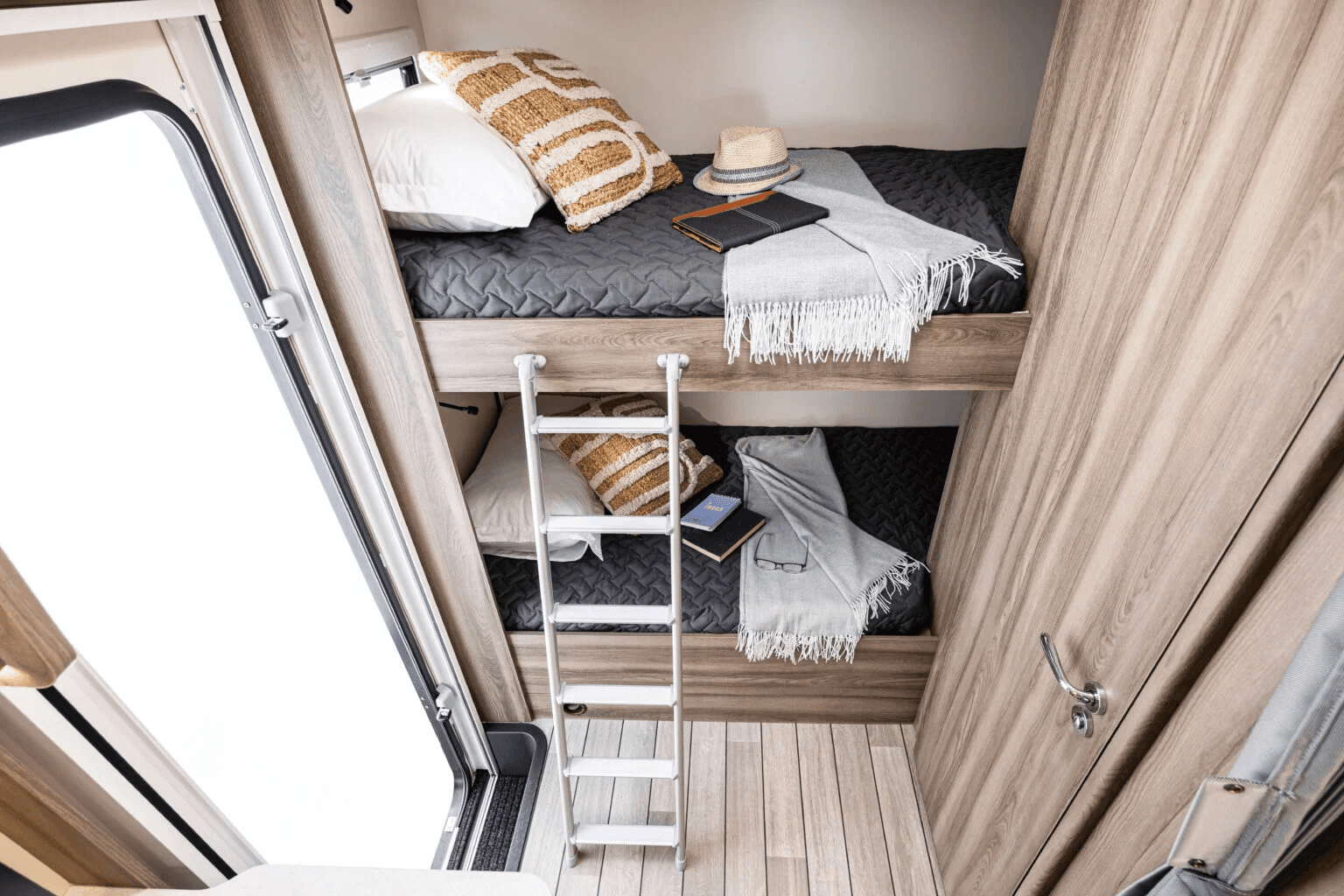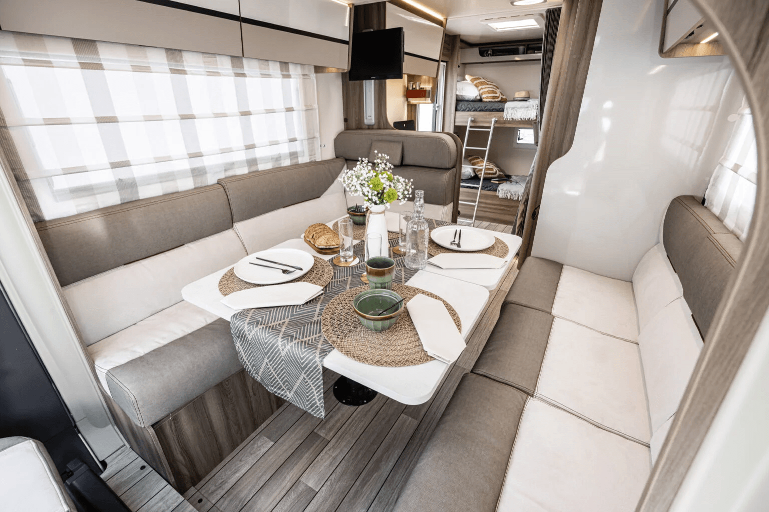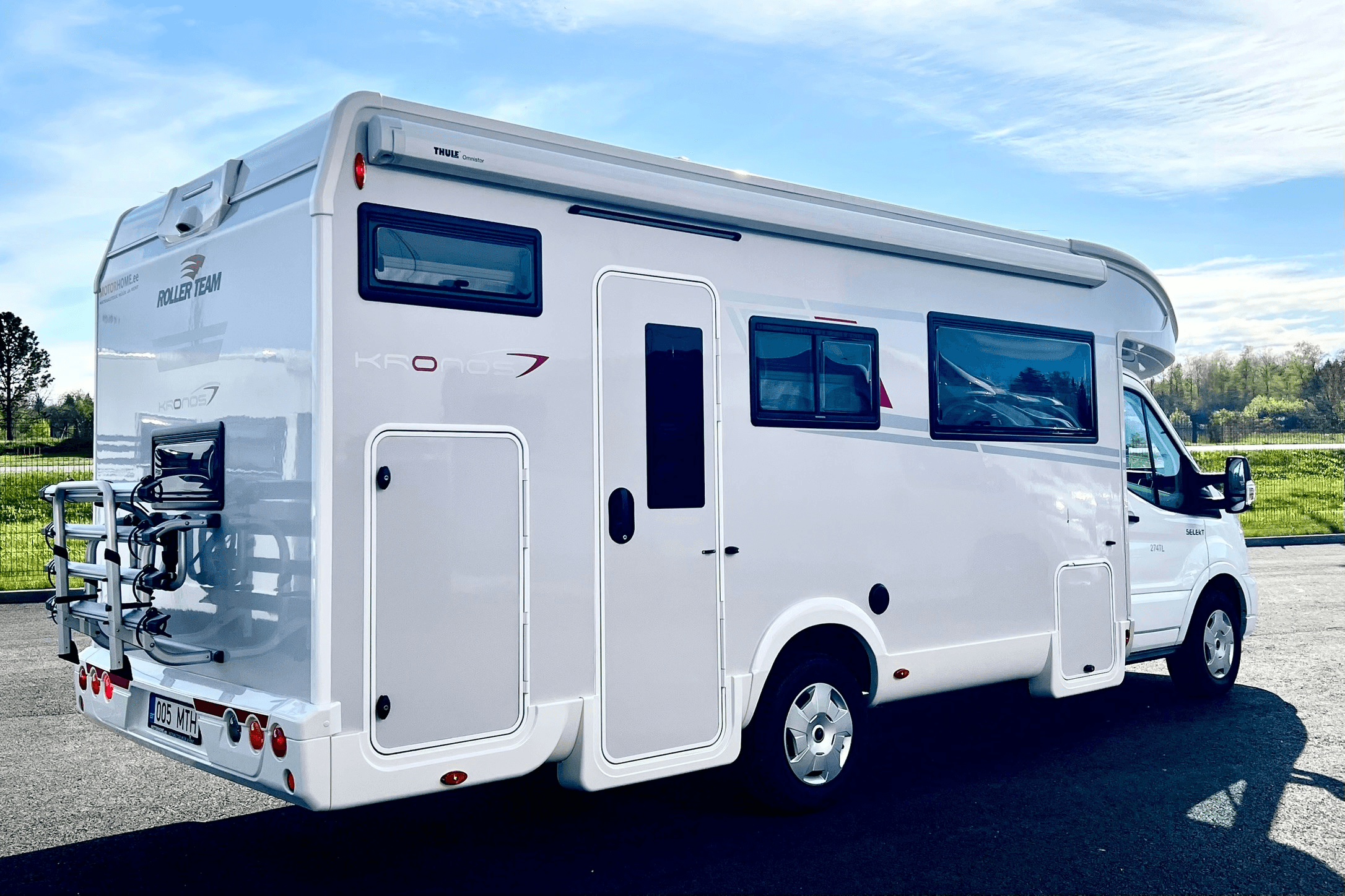 Discover the ultimate family adventure with the brand-new 2026 Ford Roller Team Kronos 274 TL, a spacious motorhome perfect for up to 6 travelers. This luxurious home-on-wheels features separate bedrooms, a dedicated living area, full kitchen with 2-burner gas stove, large sink, and 135L fridge/freezer (operable on gas, battery, or shore power). Sleeping arrangements include an electric drop-down double bed (203x160 cm), rear bunk beds (210x86 cm), and two convertible singles from dinette (178x68 cm and 187x68 cm), all with insect screens on windows and doors. The bathroom boasts a separate shower cabin and WC room with sink and mirror cabinet. Stay comfortable year-round with a 100L fresh water tank, 10L hot water boiler, powerful diesel (6000W) and electric (1800W) heating, electric floor heating, and full winterization package including insulated pipes, gray water tank, and living area steps. Off-grid ready with 200W solar panels for battery charging. Additional perks: large rear garage for bikes/gear, bike rack, awning, roof vent fan, swivel driver/passenger seats convertible to armchairs, reversing camera, and cruise control. Powered by a 165hp diesel engine with automatic transmission, 90L fuel tank, and 10.9L/100km consumption. Dimensions: 7.45m long, 2.3m wide, 2.9m high, 3500kg GVW. B-license required. Ideal for creating unforgettable memories! Note: This is the second unit of the same model; photos from prior year model, new photos coming soon.